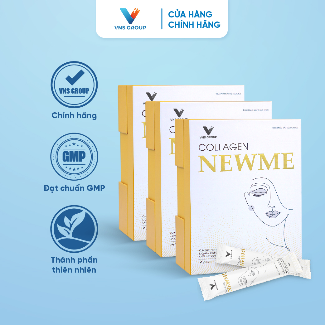 COMBO 3 HỘP Bột cốm Collagen uống NewMe VNS Group dưỡng trắng da và chống lão hóa 30 gói/hộp