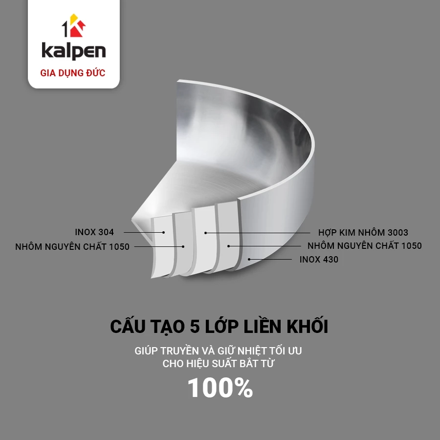 H1805-Chảo Inox 5 lớp liền khối Kalpen Lager size 28cm