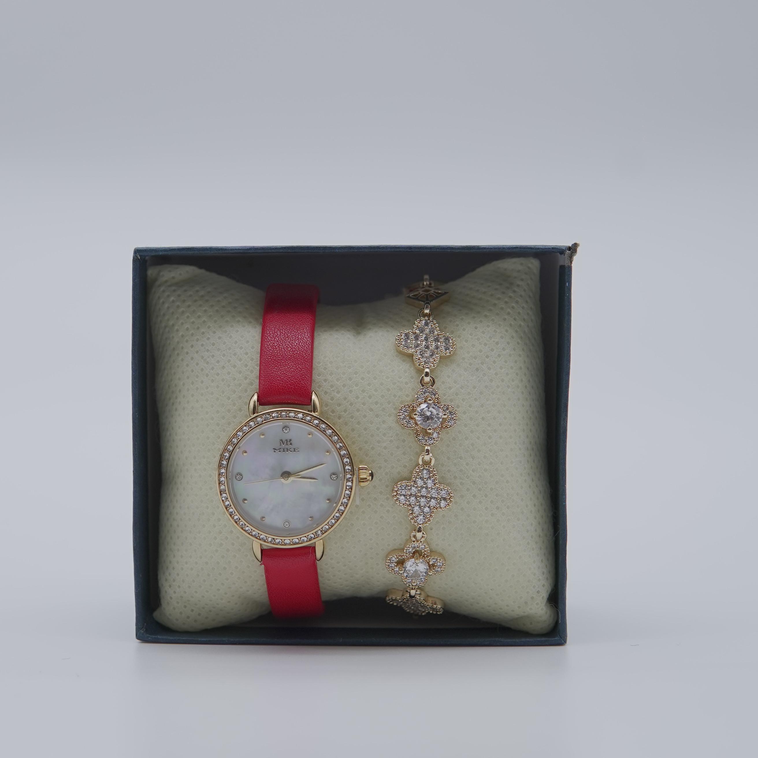 C88 - Đồng hồ ,máy vàng, dây đỏ, mặt trắng (không kèm lắc)