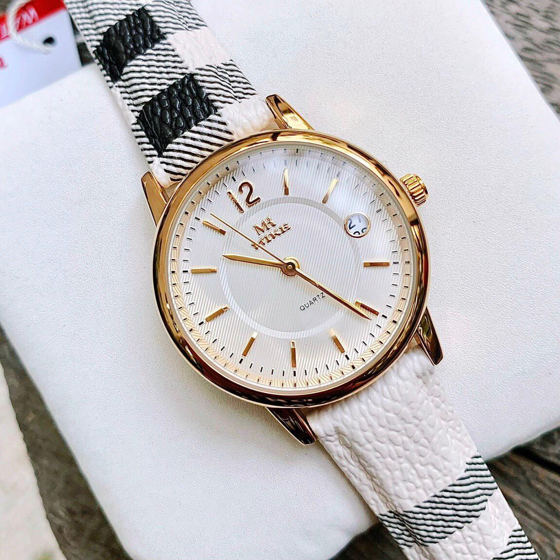 C74 - Đồng hồ ,dây da kẻ, mặt trắng