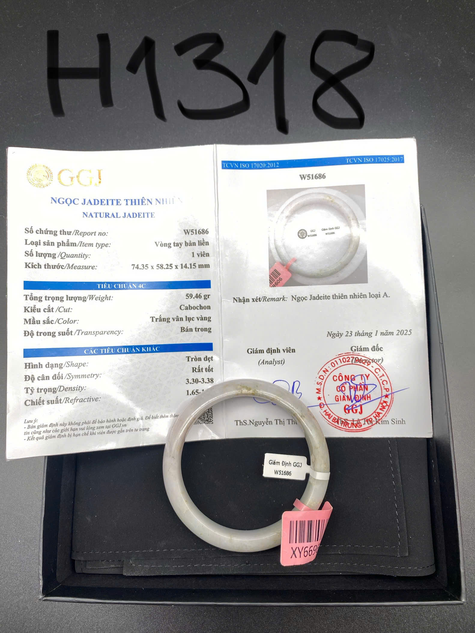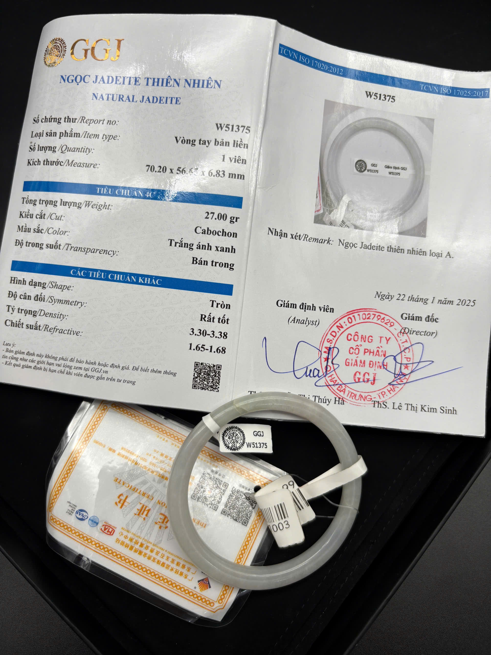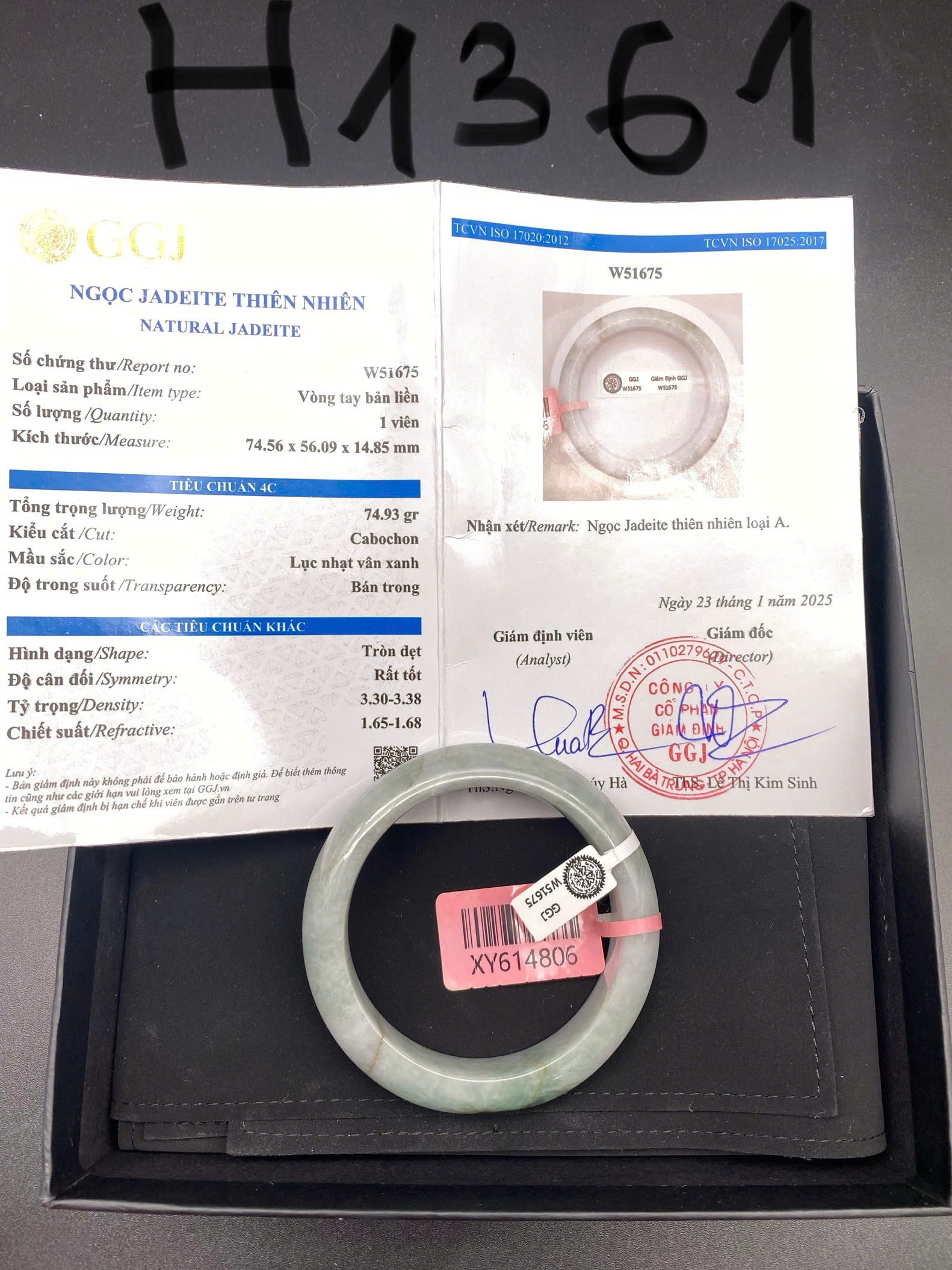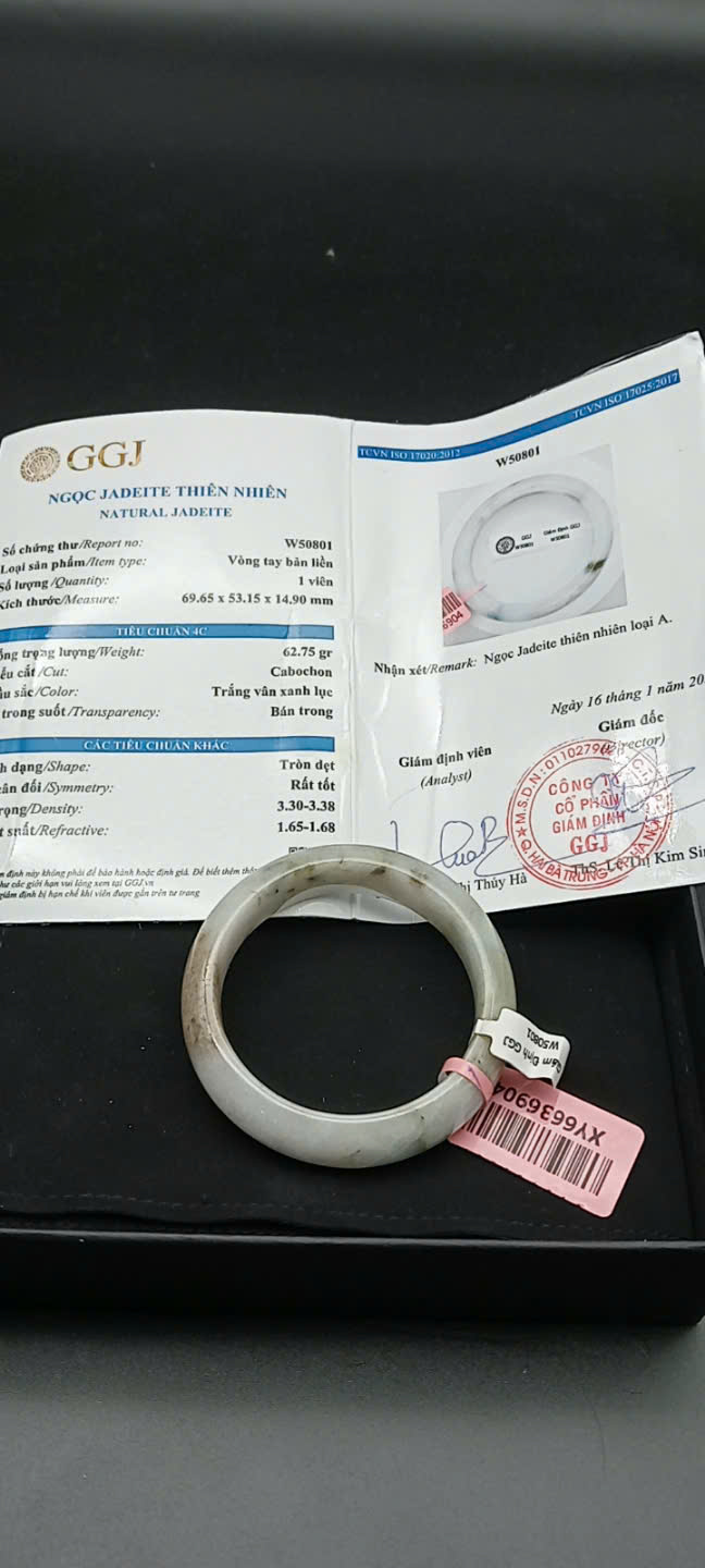 H1361 - Vòng ngọc phỉ thúy MKĐ-W51675 type A - Trắng lục nhạt vân xanh