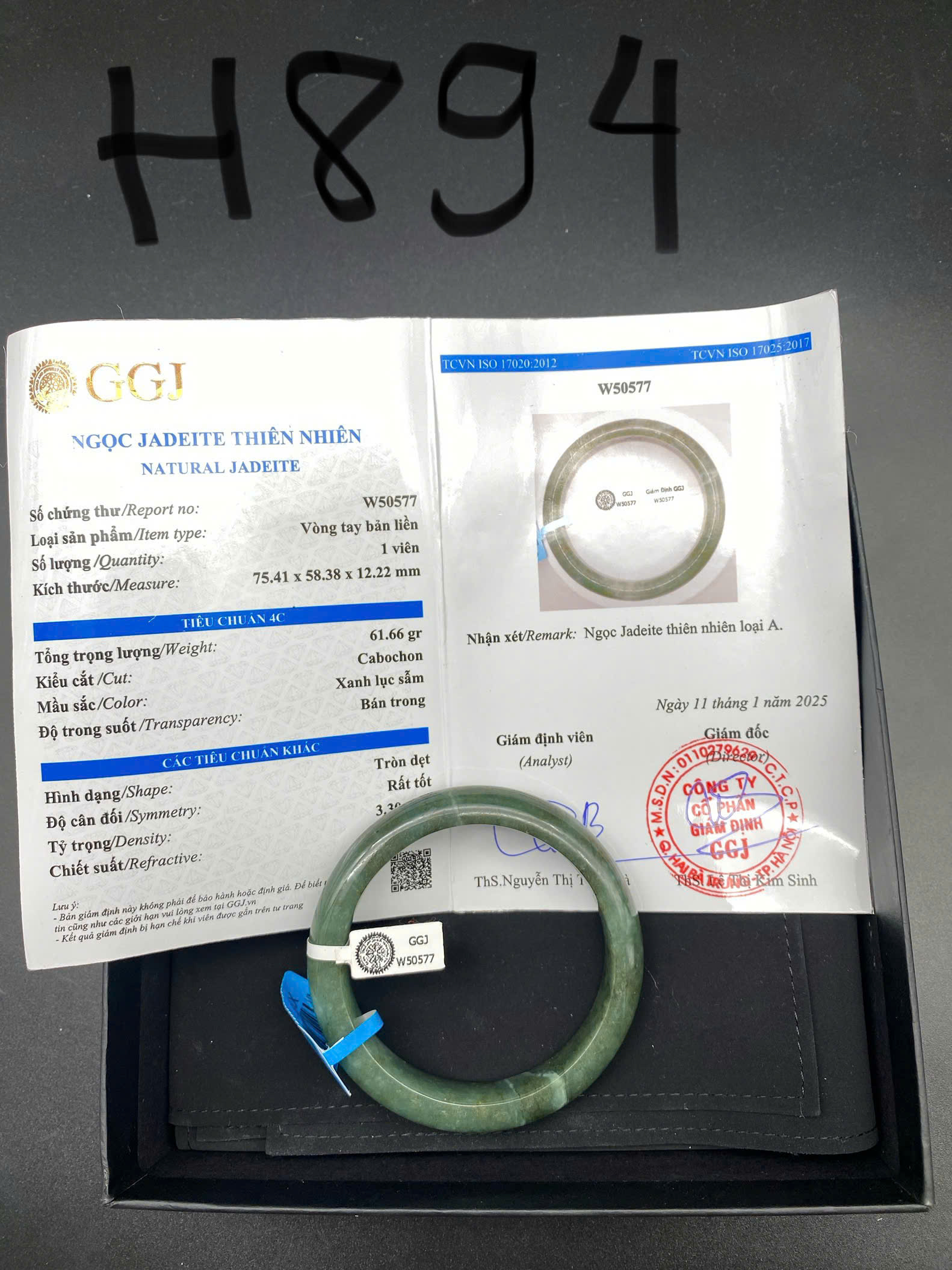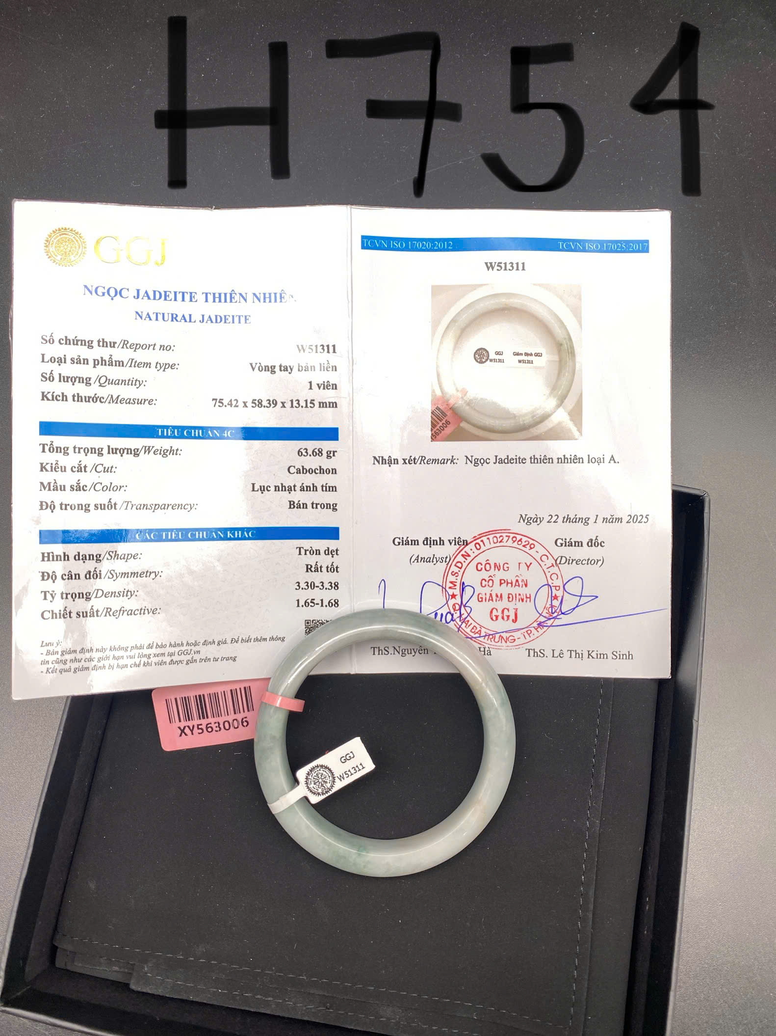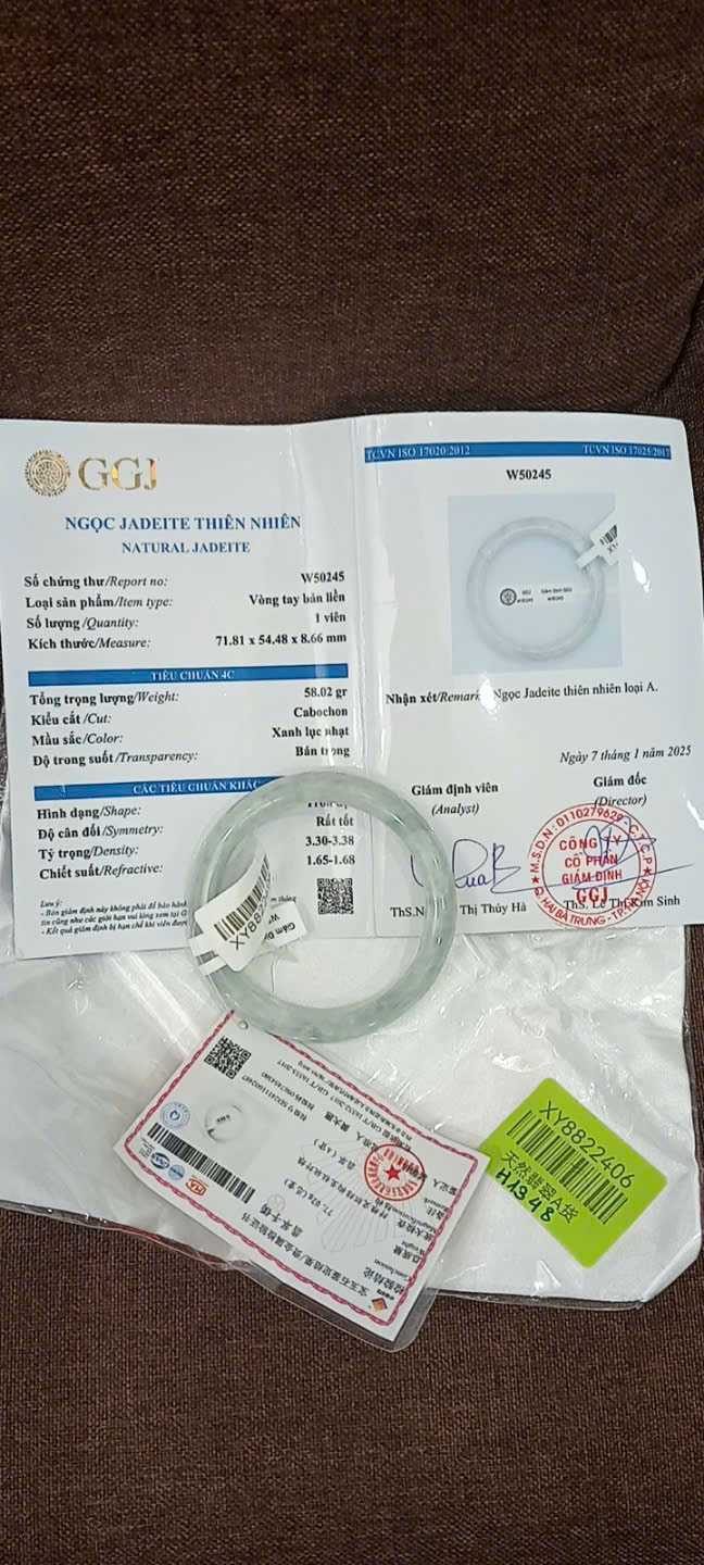 H718-Vòng ngọc phỉ thúy MKĐ-W51277 type A- Lục nhạt, hơi tím nhẹ
