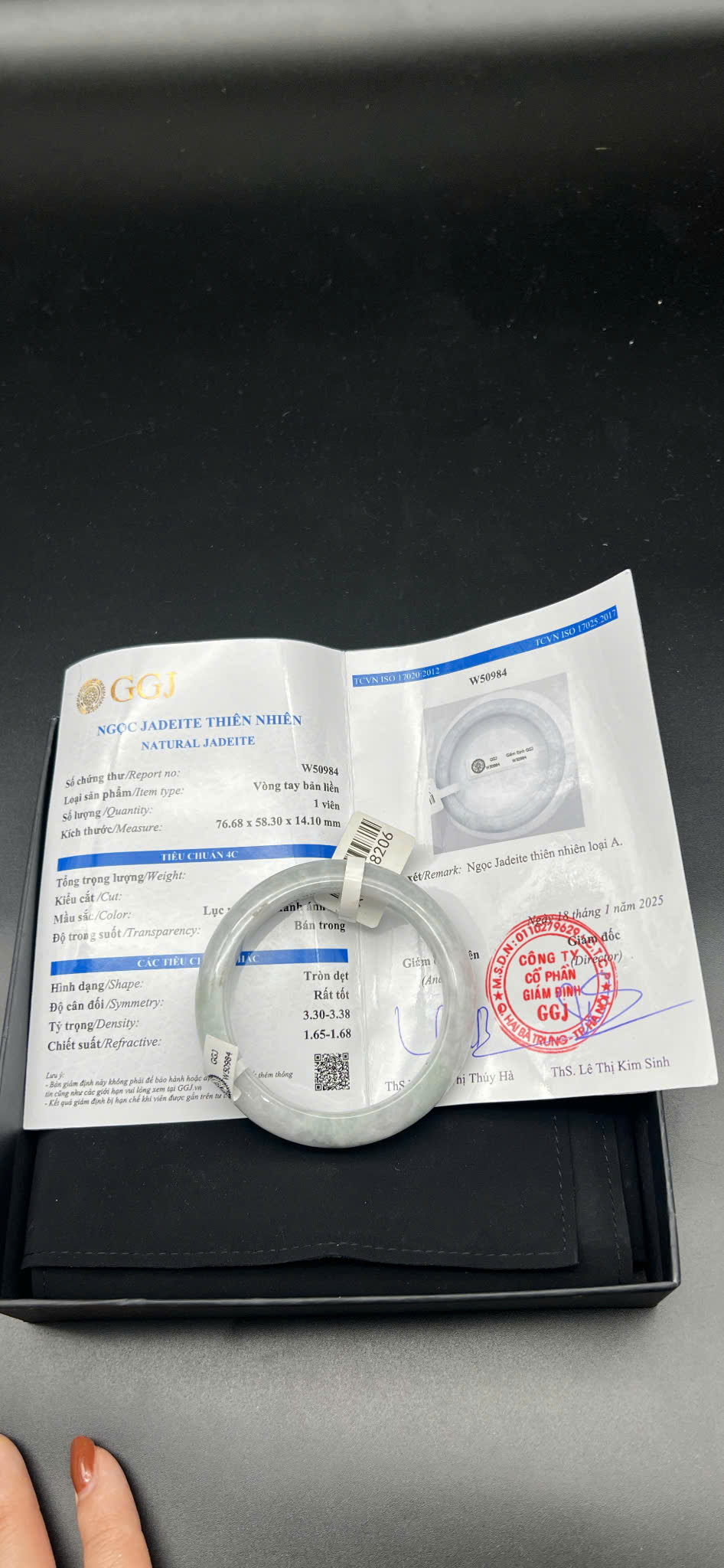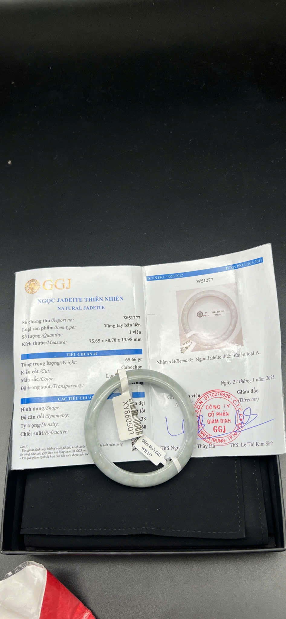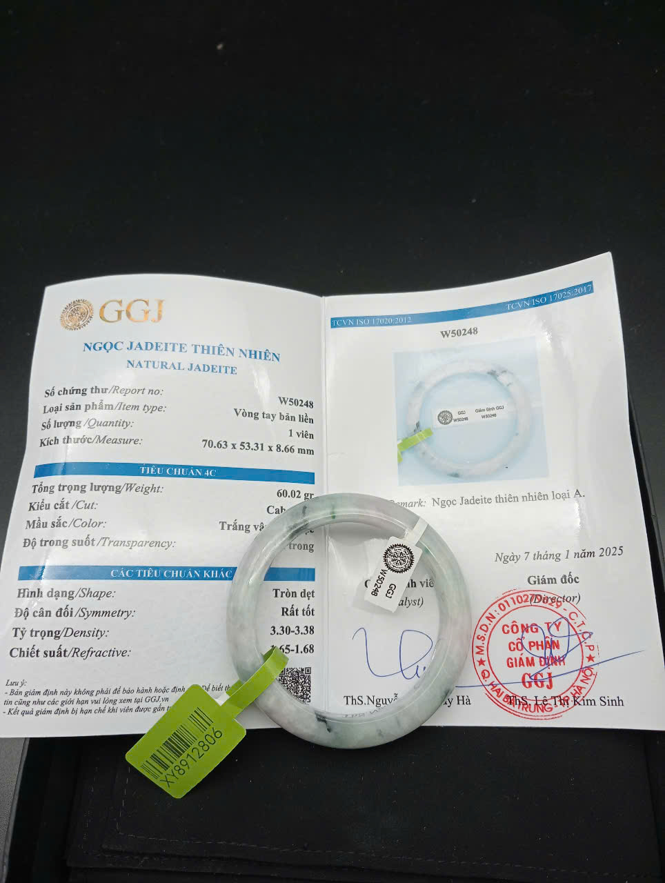 H718-Vòng ngọc phỉ thúy MKĐ-W51277 type A- Lục nhạt, hơi tím nhẹ