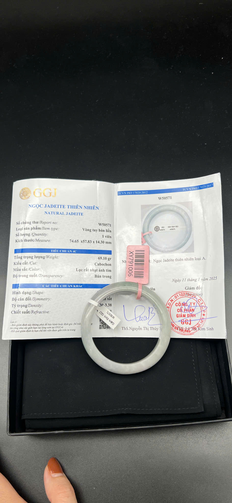 H1292 - Vòng ngọc phỉ thúy MKĐ-W50571 type A - Màu xanh lục rất nhạt ánh tím