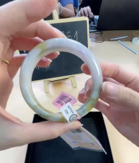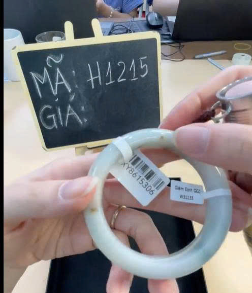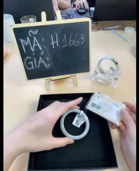 H1019- Vòng ngọc phỉ thúy MKĐ W50532- type A - Trắng vân xanh lục nhạt