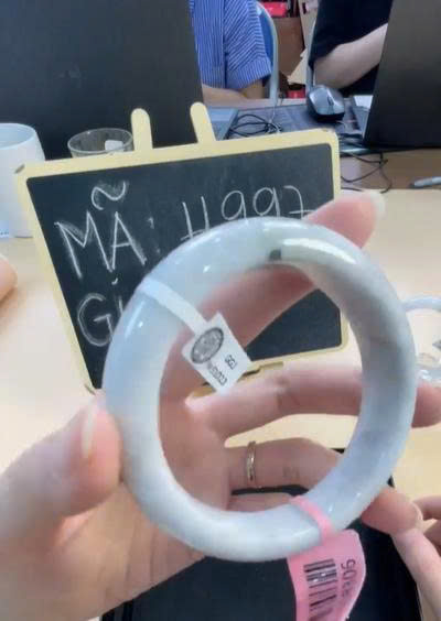 H986-Vòng ngọc phỉ thúy MKĐ W51329- type A - Trắng vân xanh lục nhạt