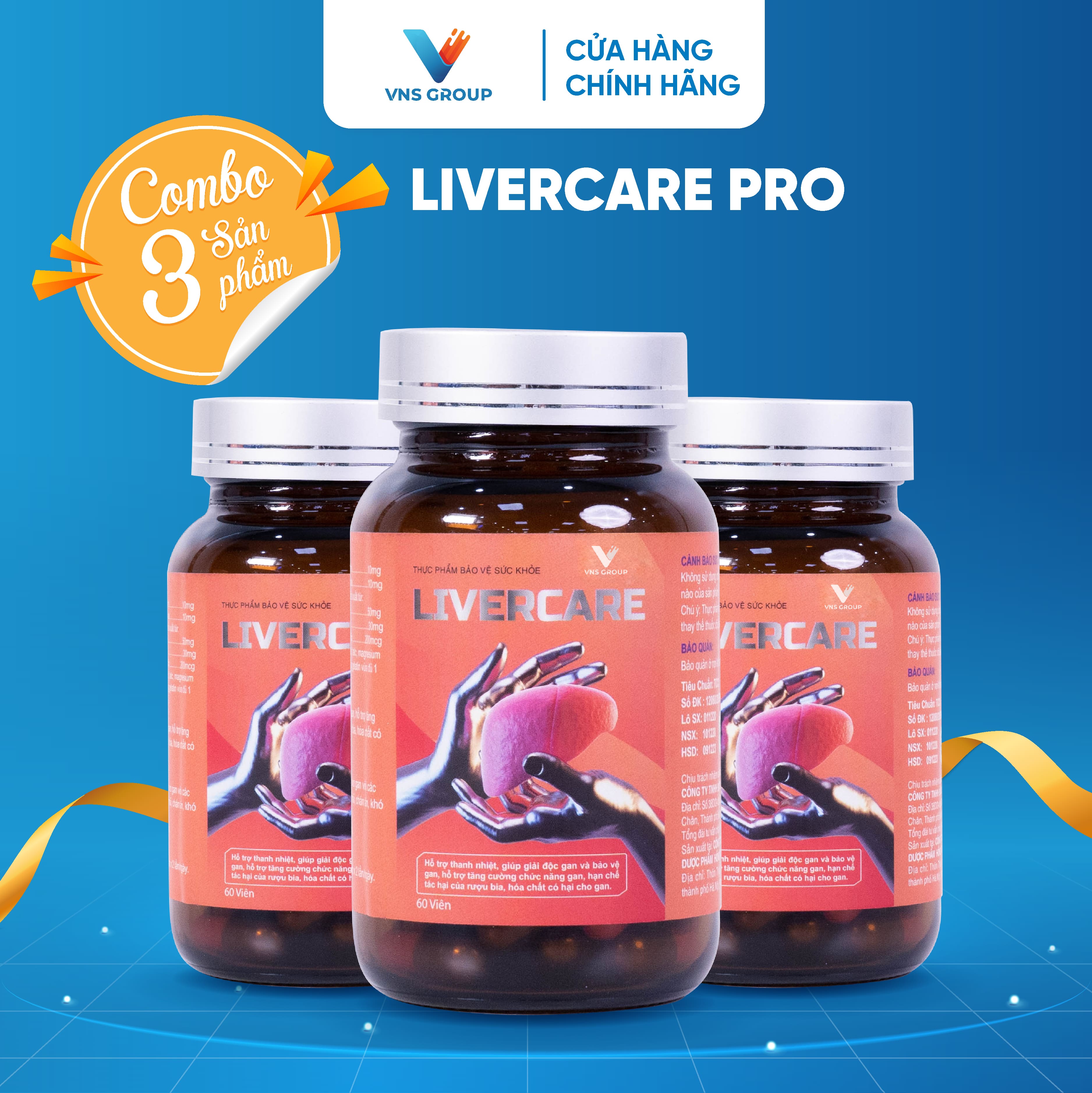 COMBO 3 Thực phẩm cho sức khỏe Livercare - mát gan giải độc, bổ gan, bảo vệ gan khỏe mạnh (Hộp 60 viên)