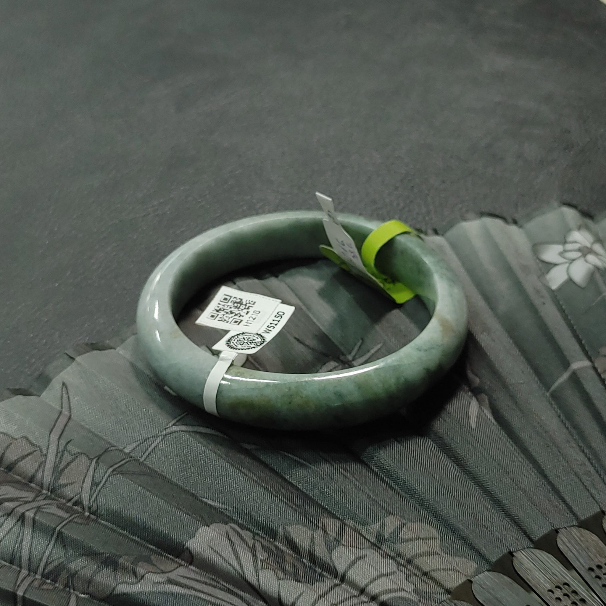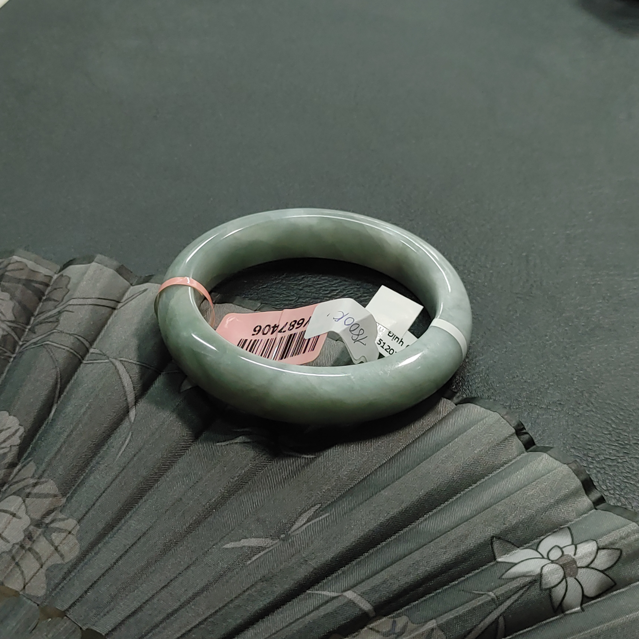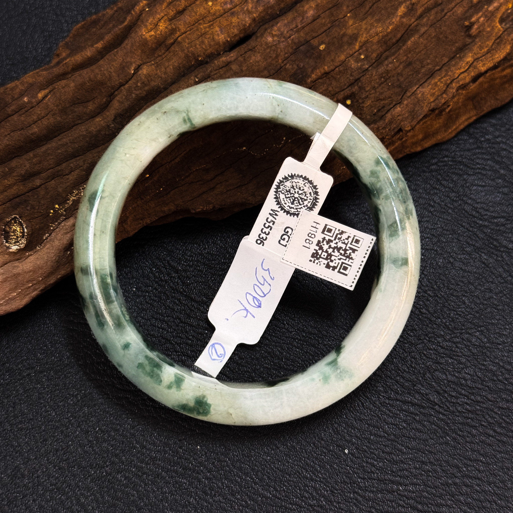 H1981- Vòng ngọc phỉ thúy MKĐ W55336– type A –xanh lục sẫm vân trắng
