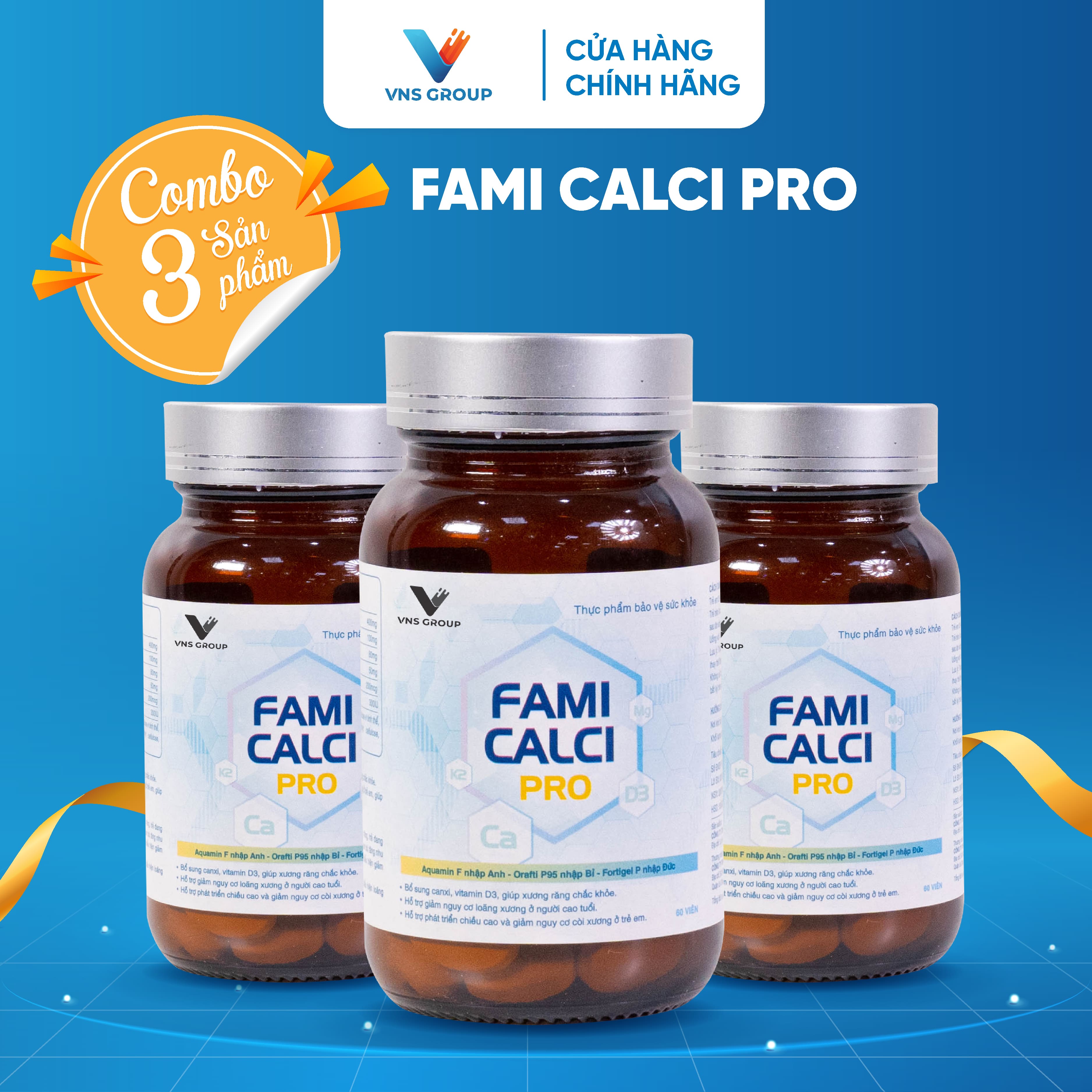 A27 - COMBO 3 Viên uống Fami Calci Pro VNS Group bổ sung canxi, vitamin D3, hỗ trợ hấp thu canxi, giúp xương răng chắc khỏe hộp 60 viên