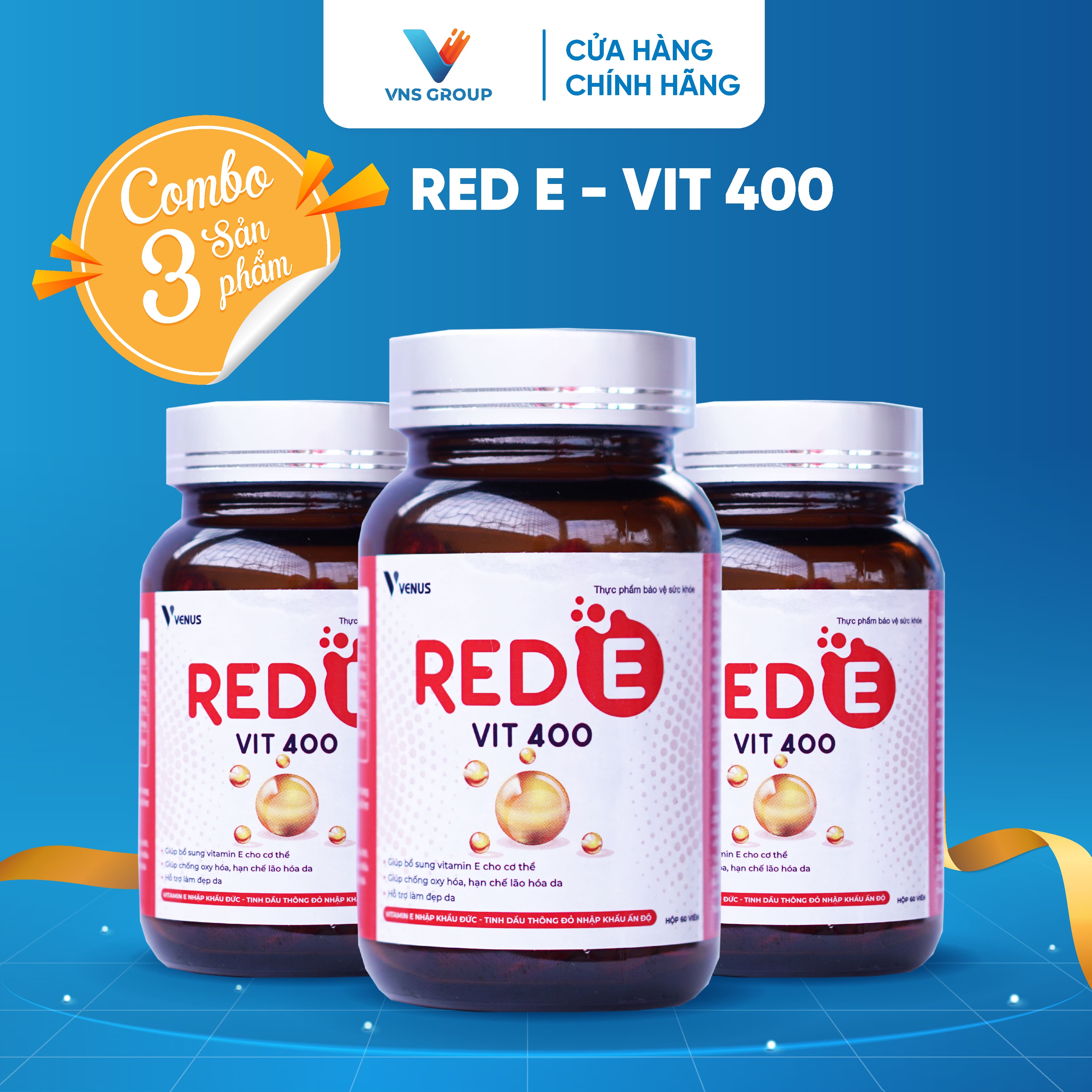 A40 - COMBO 3 Viên uống vitamin E Red E-Vit 400 VNS Group dưỡng trắng da và chống lão hóa hộp 60 viên