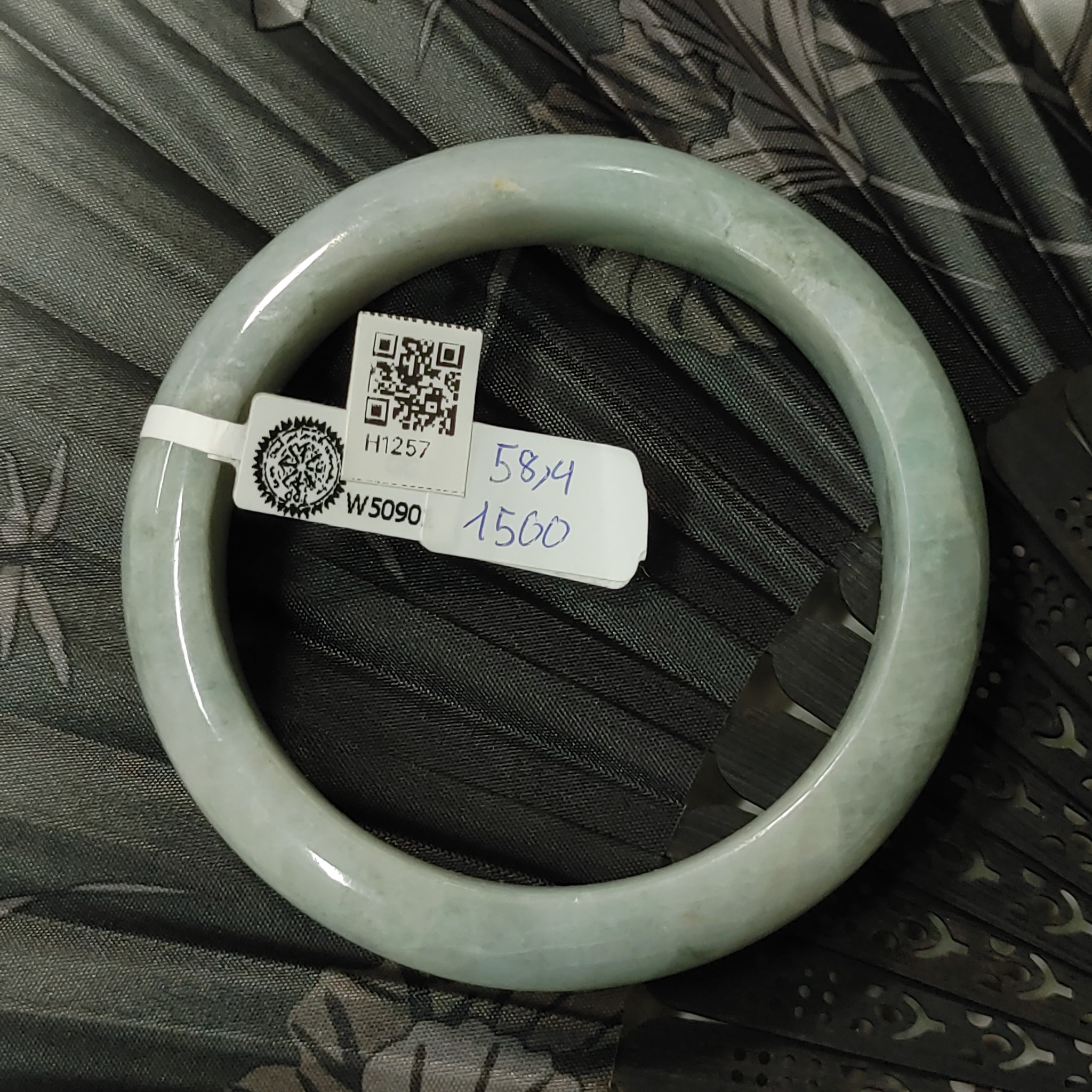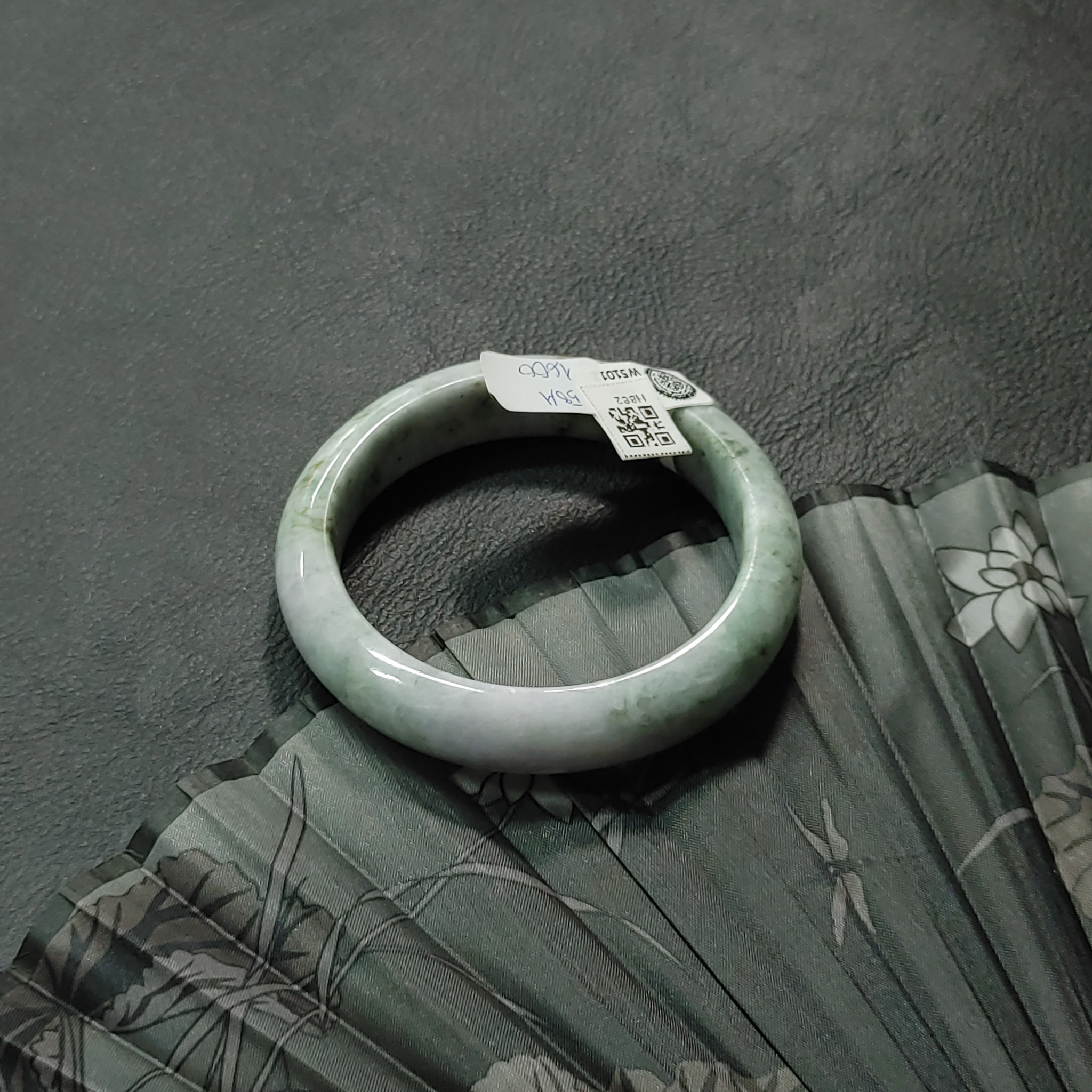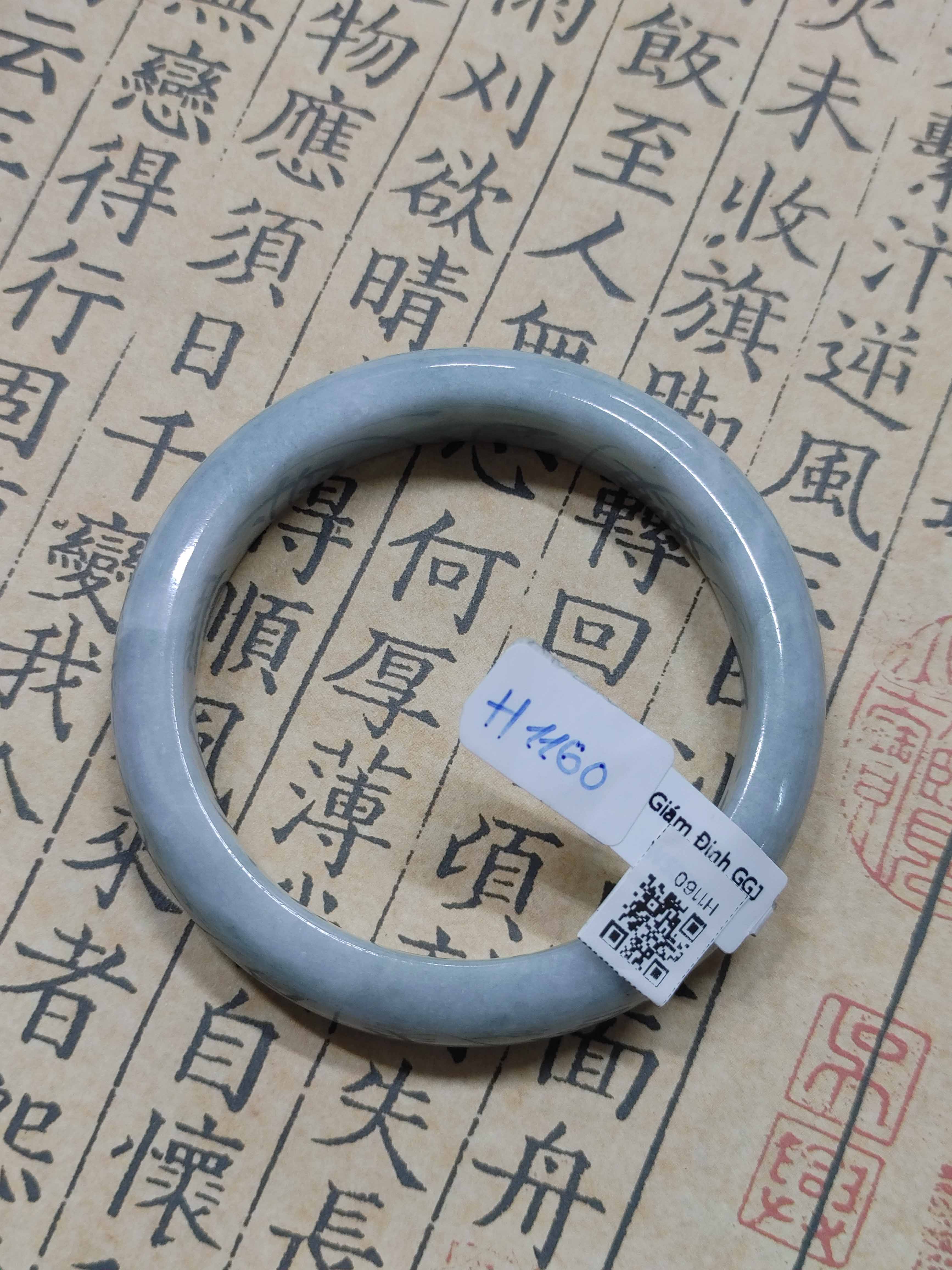 H1913- Vòng ngọc phỉ thúy MKĐ W55239- type A - Trắng vân xanh lục nhạt Ni-58