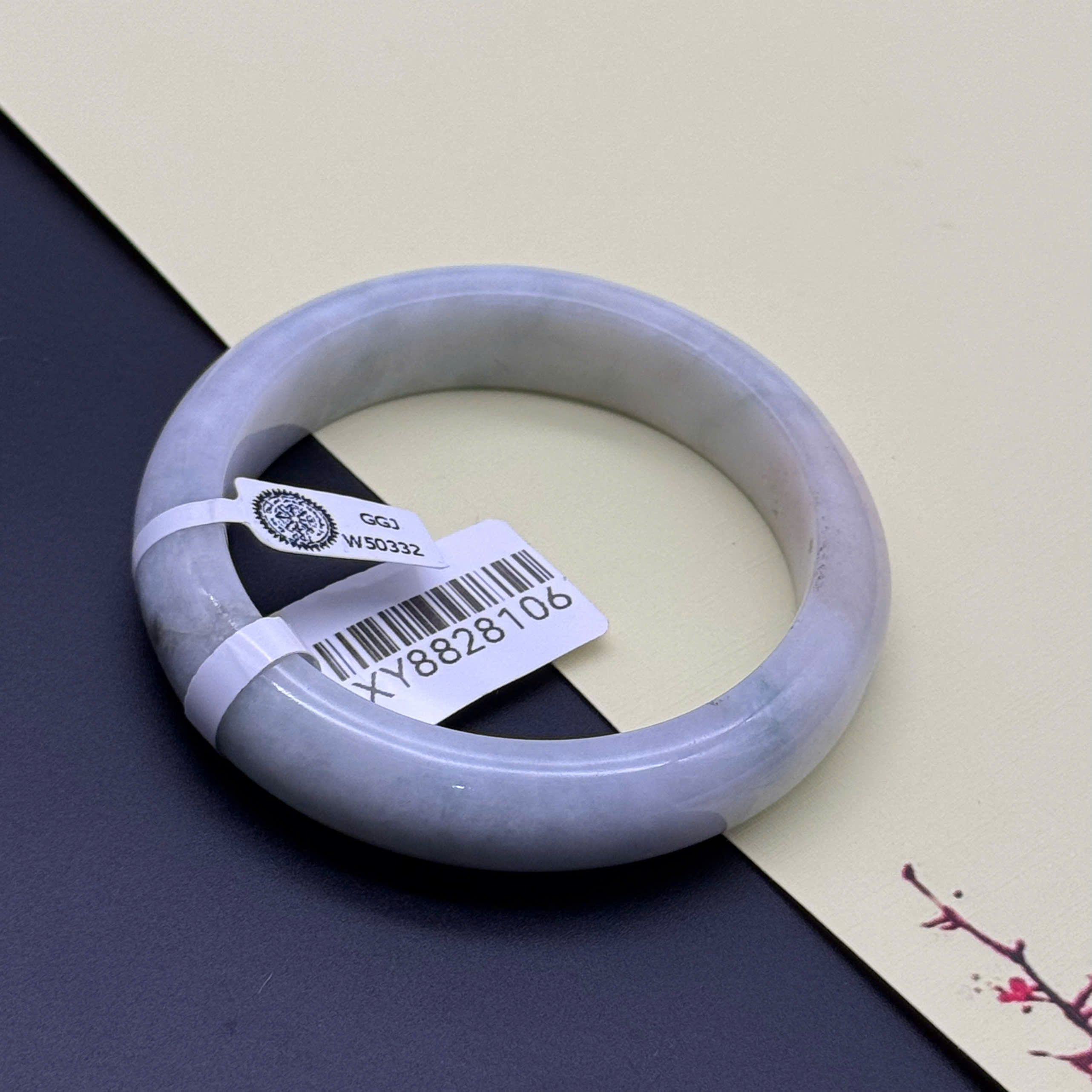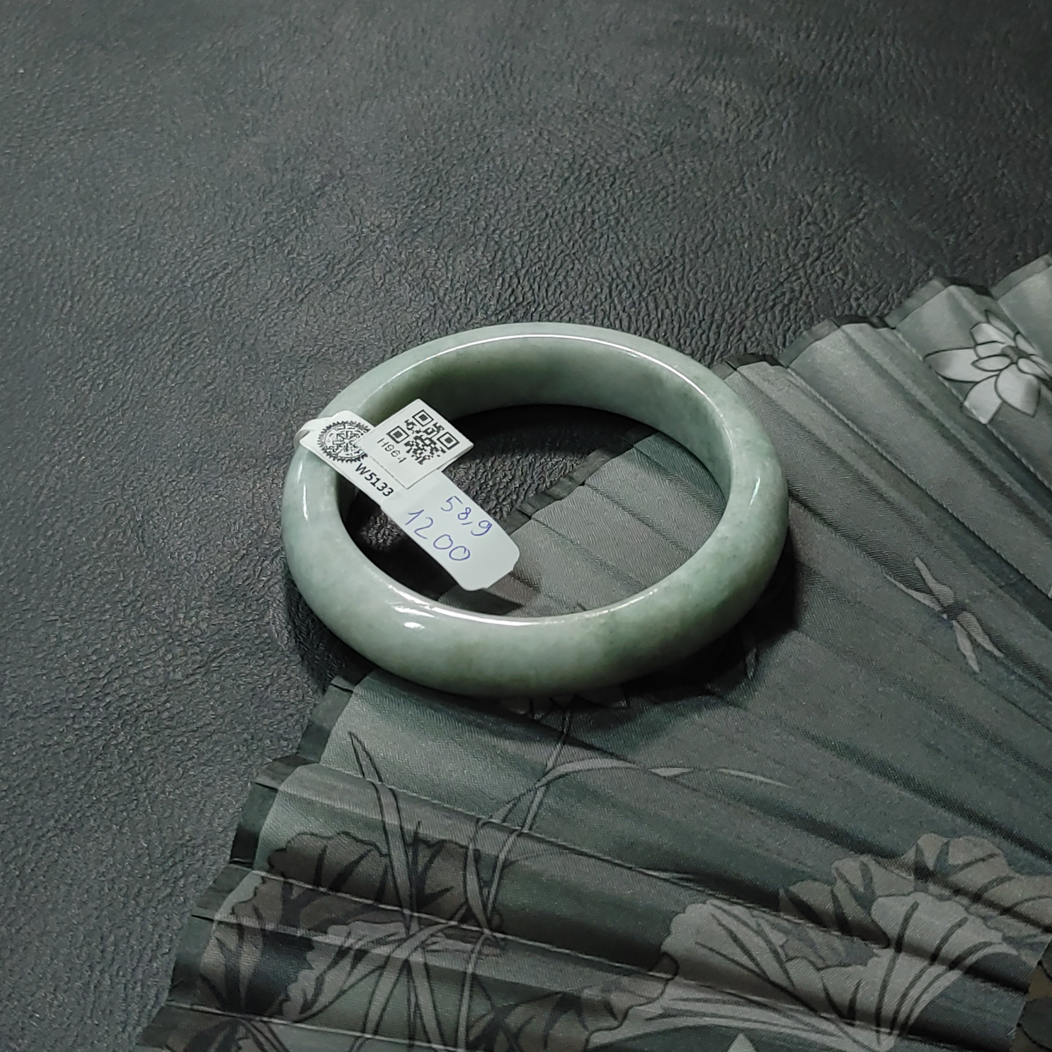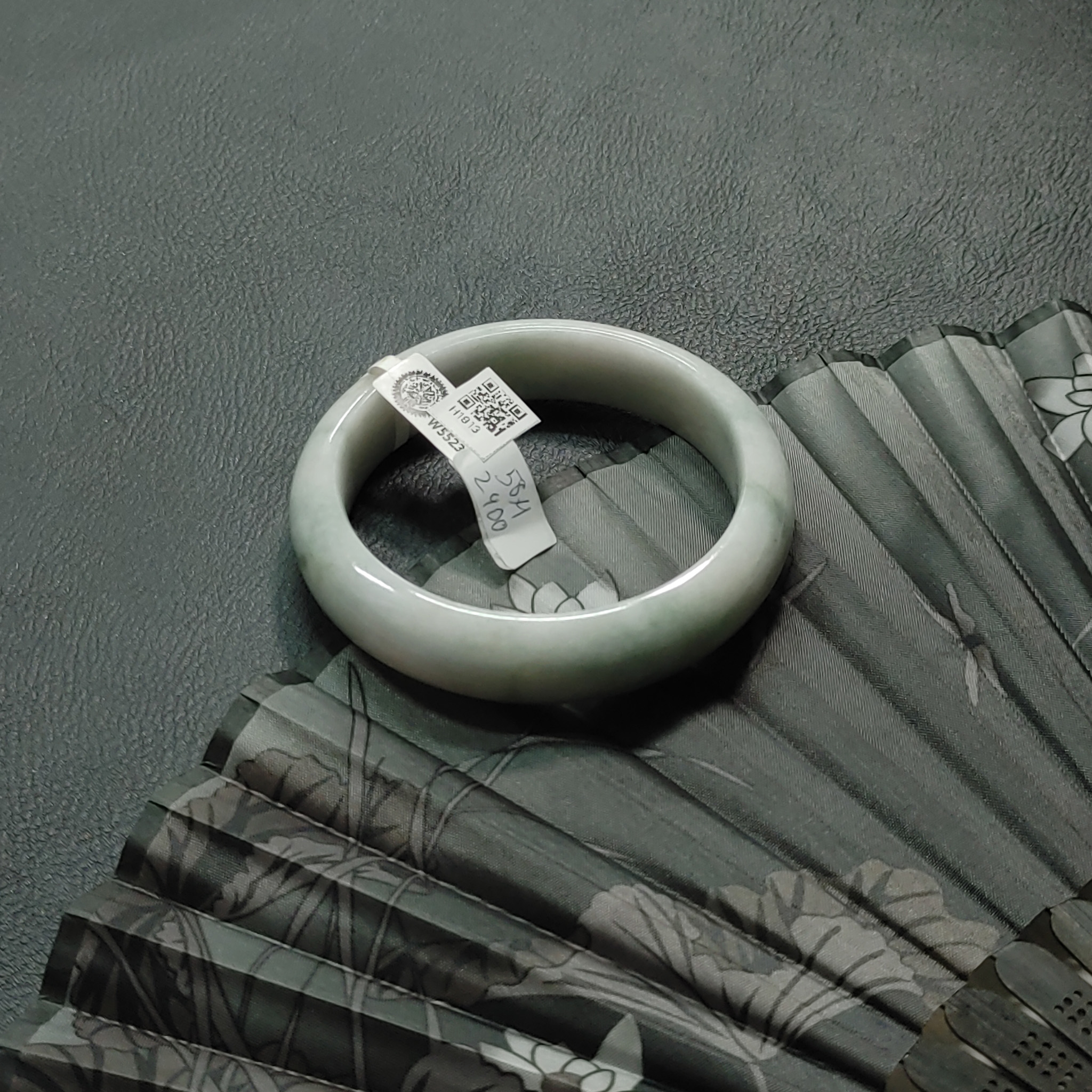 H1913- Vòng ngọc phỉ thúy MKĐ W55239- type A - Trắng vân xanh lục nhạt Ni-58
