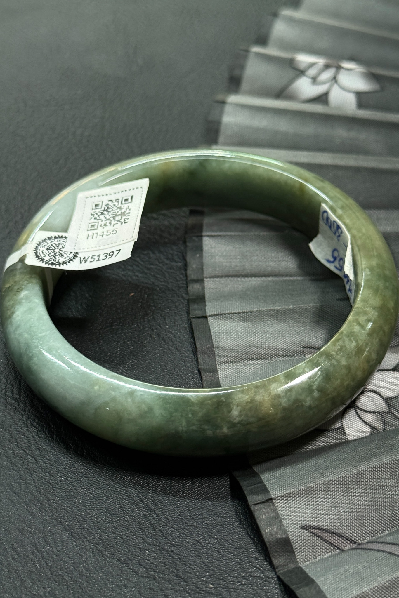 H1921- Vòng ngọc phỉ thúy MKĐ W55247- type A - Trắng vân xanh lục sẫm