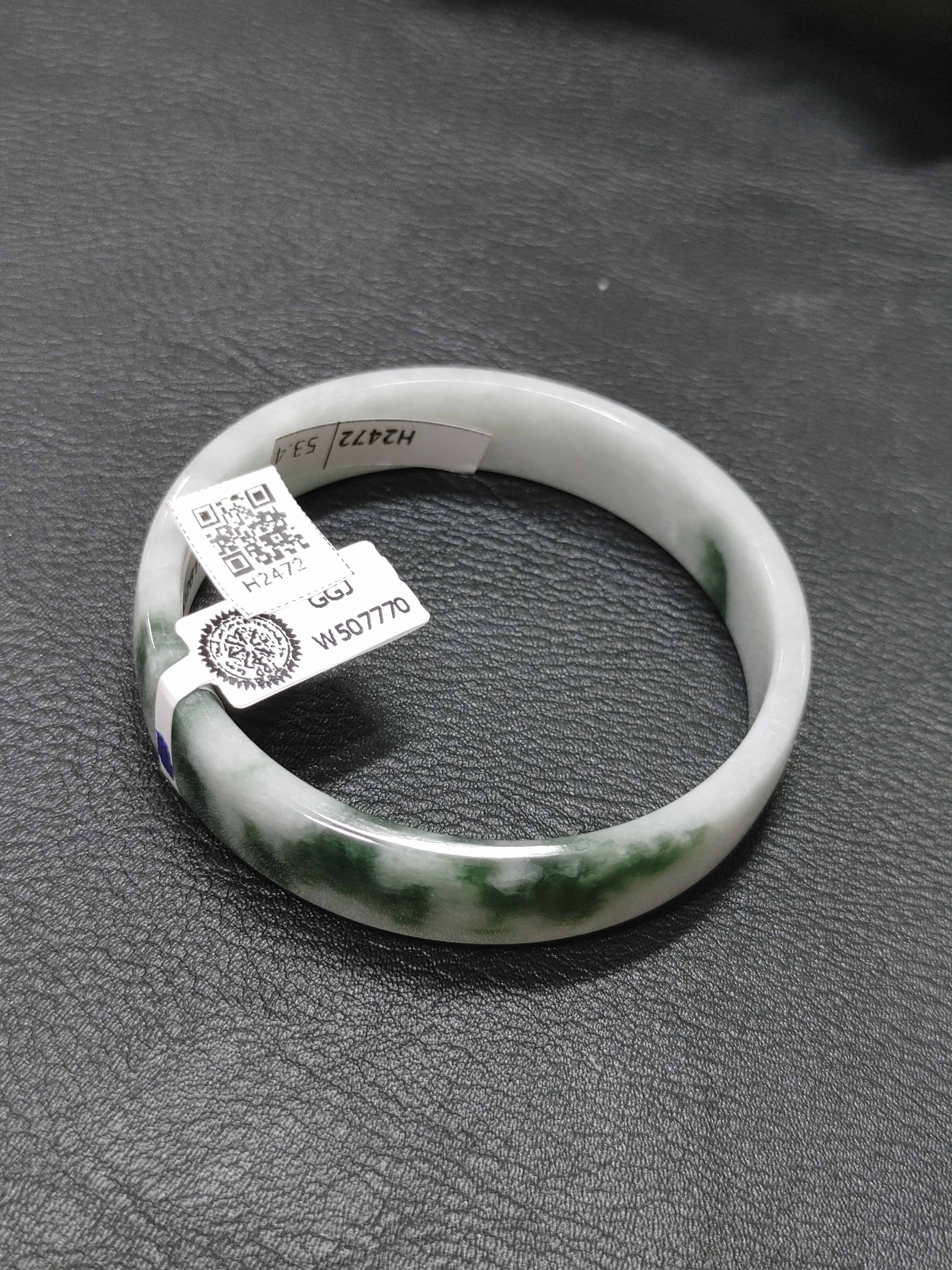 H2472-Vòng ngọc phỉ thúy MKĐ-W507770 Type A-Trắng vân xanh lục Ni-53