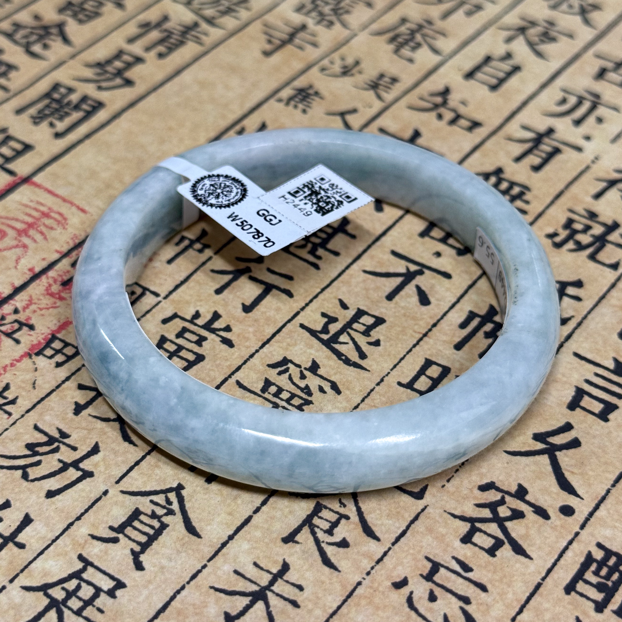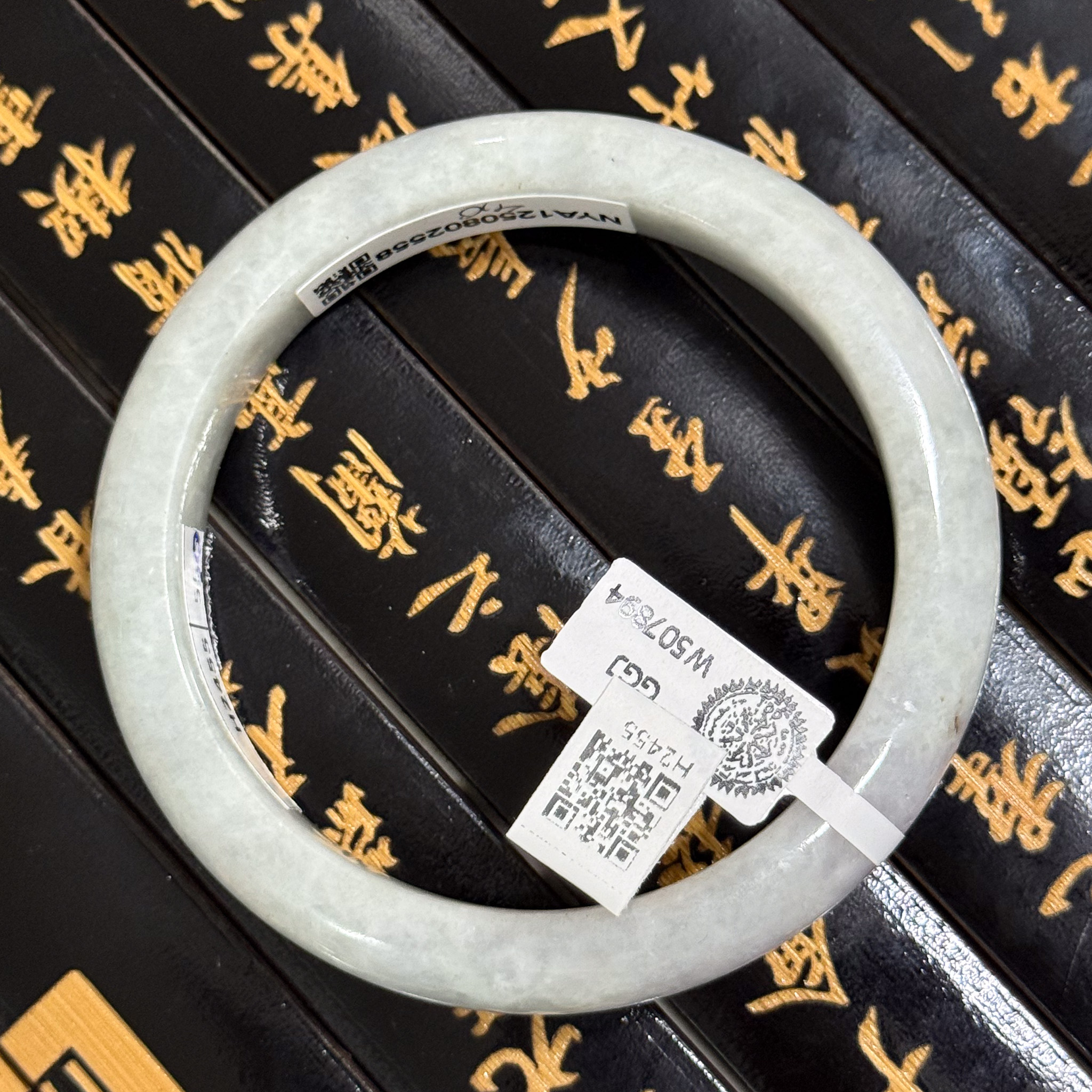 H2435-Vòng ngọc phỉ thúy MKĐ-W507866 Type A-Trắng vân xanh lục nhạt Ni-55