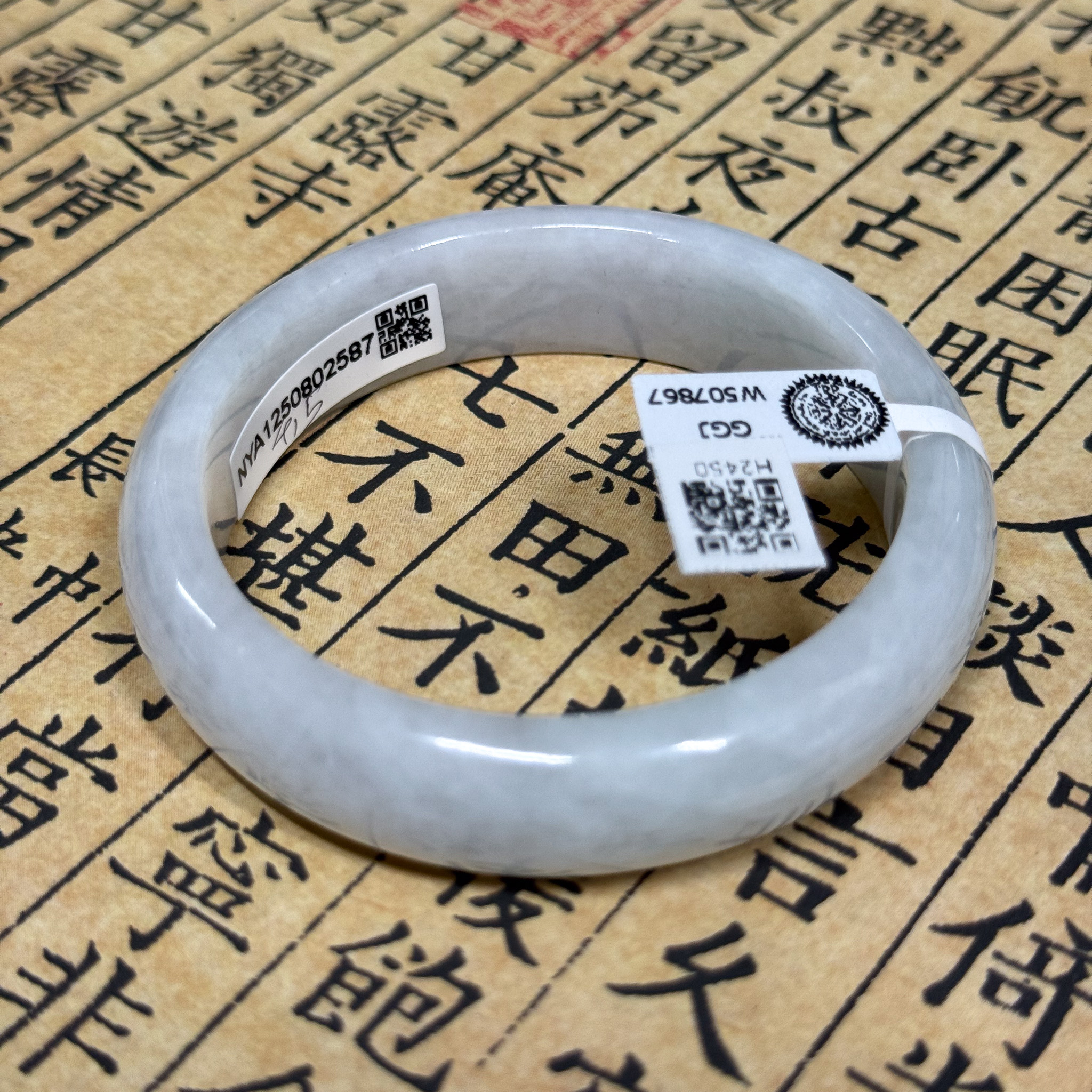 H2450-Vòng ngọc phỉ thúy MKĐ-W507867 Type A-Trắng ánh xanh Ni-55