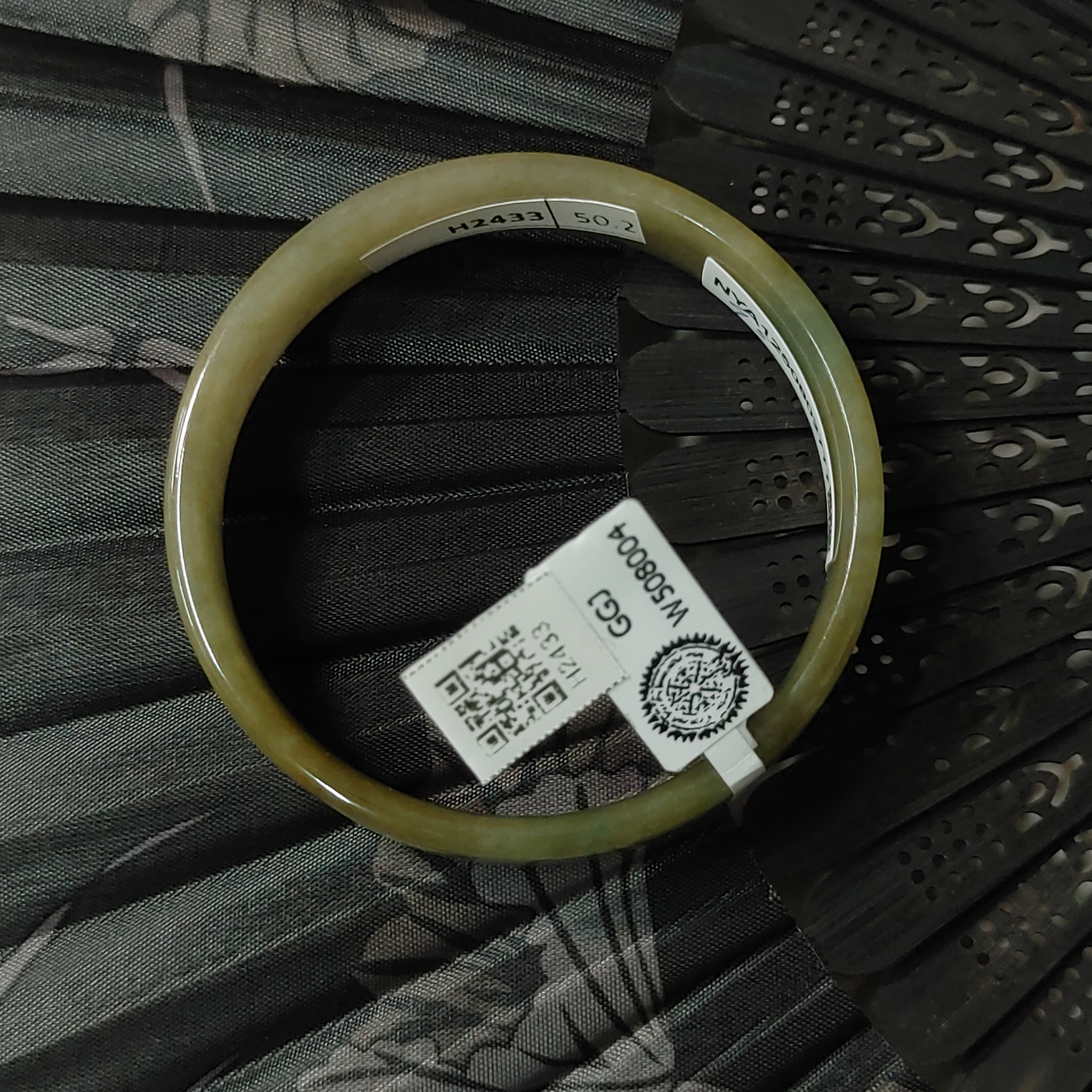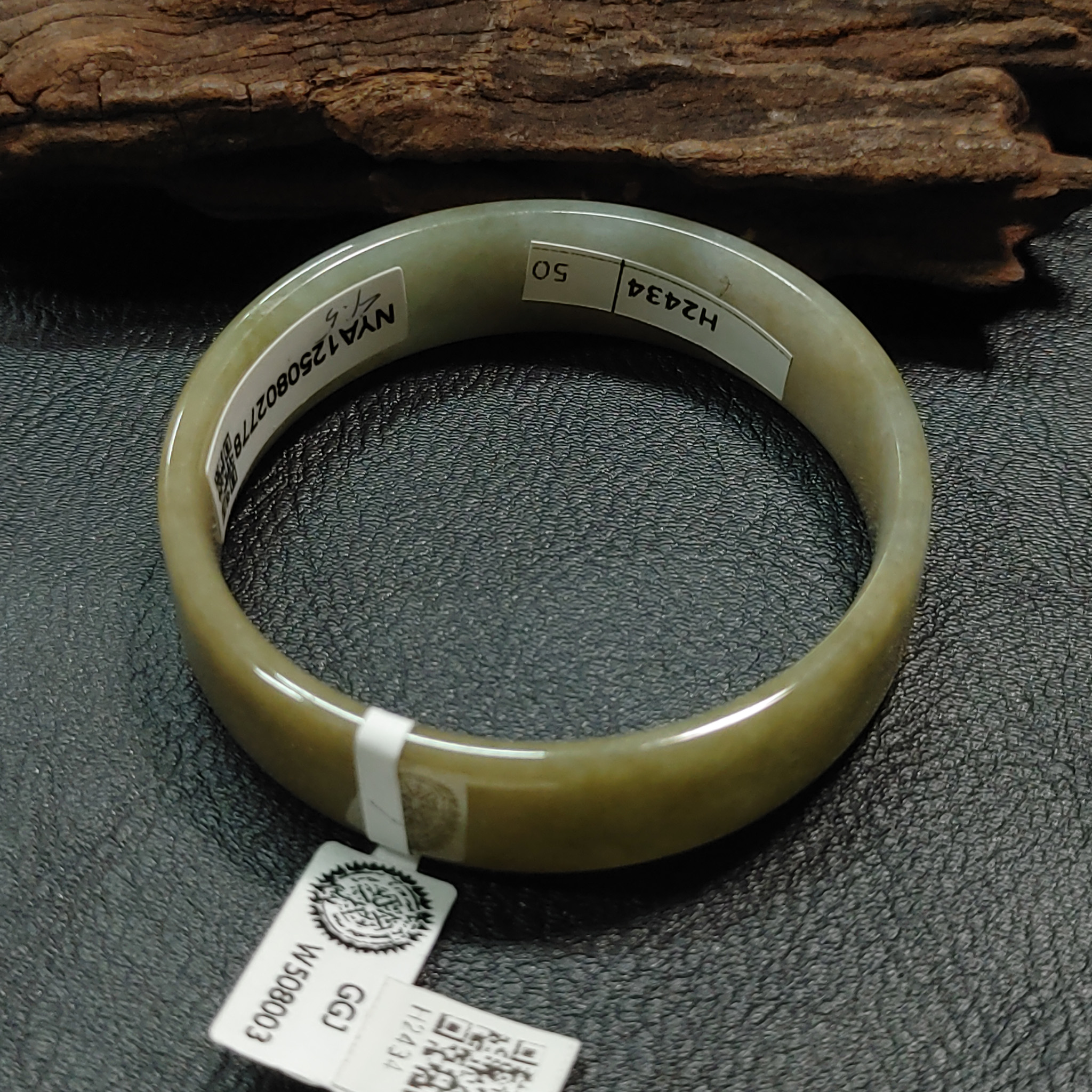 H2474-Vòng ngọc phỉ thúy MKĐ-W507780 Type A-Trắng vân xanh lục sẫm Ni-53
